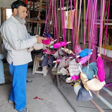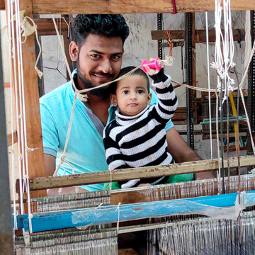 In a country with many fine weavers, and even some great masters, Mehmood Ansari stands out as an artist—or a weaving wizard! One of the finest craftsmen of India, Ansari started weaving from a young age at an NGO in Maheshwar—a weaving village in the heart of central India. He spent many years here, honing his skills and producing fine silk sarees and stoles that were appreciated by a high-end clientele in India and abroad. In the late 90s, he set up his own weaving centre which grew rapidly and soon Ansari was making fabrics that were sourced by top fashion designers. What sets his work apart from anyone else is his willingness to experiment and try new innovations in his craft. Today, his 3 sons handle most of the weaving business but anytime there is a new design to be created, Ansari is up for the challenge. With a gleam in his eye, he is back to the loom, doing what he loves best!
