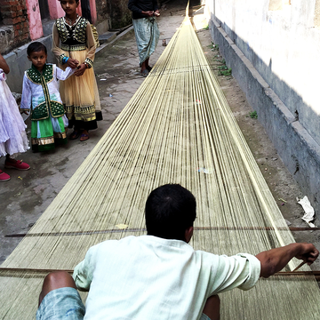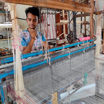 Adiv is proud to work with master Swapan Nandy of Phulia in West Bengal. Nandi learned to weave from his father who was part of the weaving community that migrated to India from Bangladesh during the Partition of India in 1947. Operating in an extremely remote and rural part of India, Nandi has seen many ups and downs in life. From hosting high-end French designers at his own village home to having all his work taken away overnight by crooked traders, he has been strong through it all. His knowledge and genuine love for the craft has kept him going. Today, the super soft cottons and linens that he weaves for us are appreciated by many of our customers the world over.