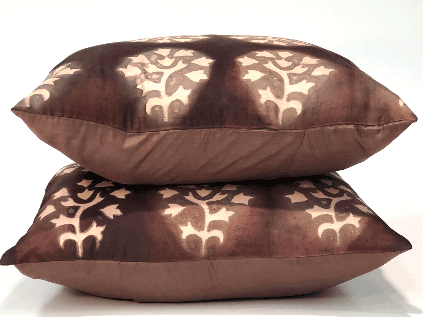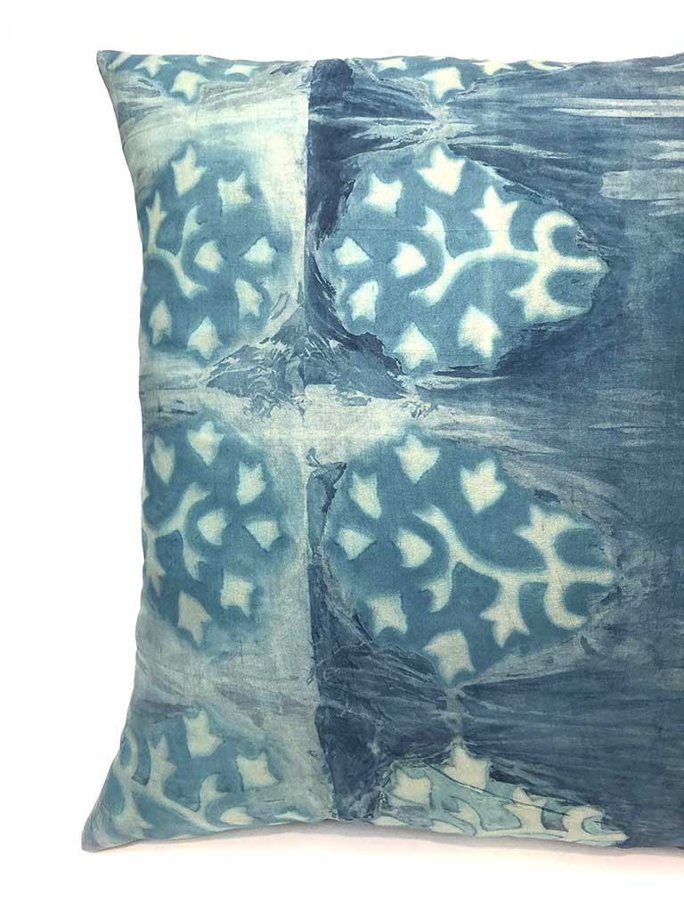 Stunning hand-dyed pillow celebrates the fluid movement of dye techniques to create a dramatic accent for your home. Adiv’s designer shibori techniques reveal subtle tones of color and pattern using blends of sustainable natural dyes like indigo, madder, coconut, marigold and pomegranate peel. 100% silk fabric has a soft hand, slight surface texture, and luxurious matte finish that is as elegant as it is comfortable. Pillows are lined, with a deep foldover closure. Uniquely their own, each pillow from Adiv embodies the possibilities of contemporary natural dyeing while also honoring traditional techniques of Indian design and craftsmanship.